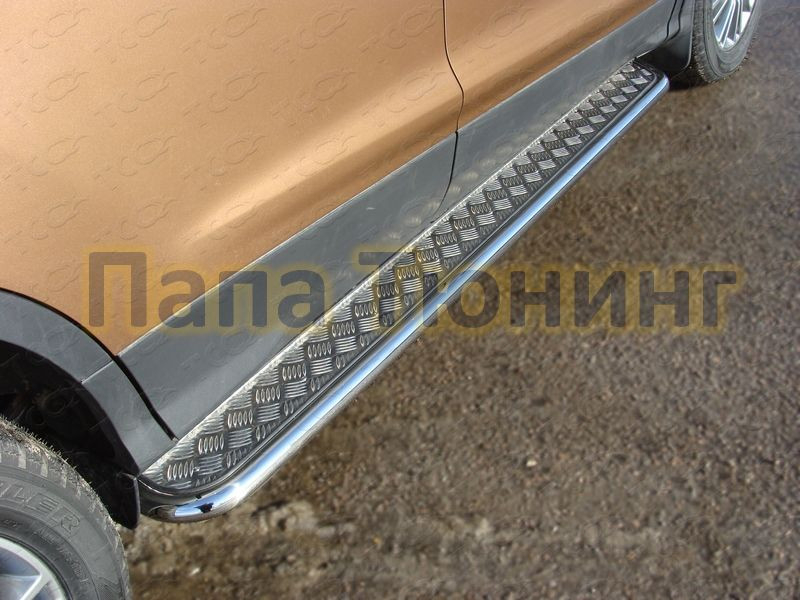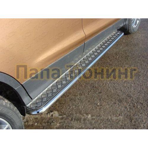 Пороги овал с площадкой нержавеющий лист 75х42 мм ТСС для Ford Kuga 2013-2016