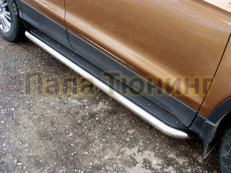 Пороги алюминиевые Brillant серебристые для Ford Kuga 2008-2013