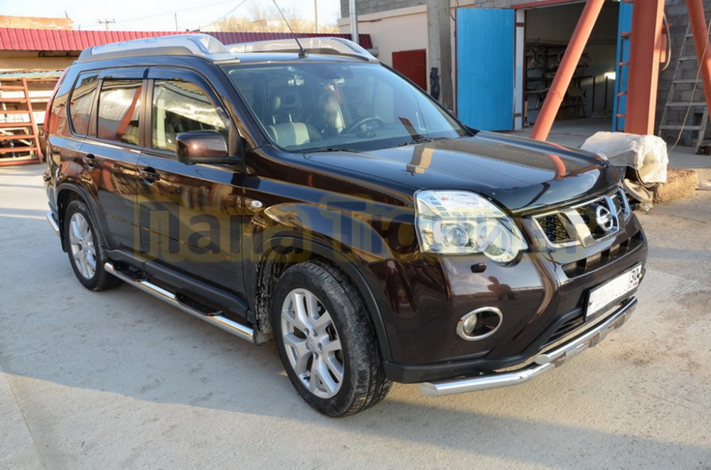 Пороги с площадкой алюминиевый лист 42 мм Slitkoff для Nissan X-Trail T31 2007-2011
