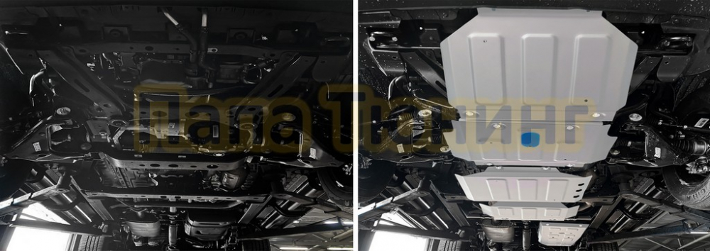 Защита картера + КПП + комплект крепежа Rival Алюминий для Geely Monjaro;2023-;2 0;4WD;АКПП