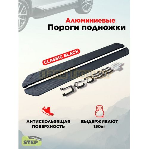 Пороги алюминиевые "Luxe Black" 1800 мм для Hyundai TUCSON IV 2021-