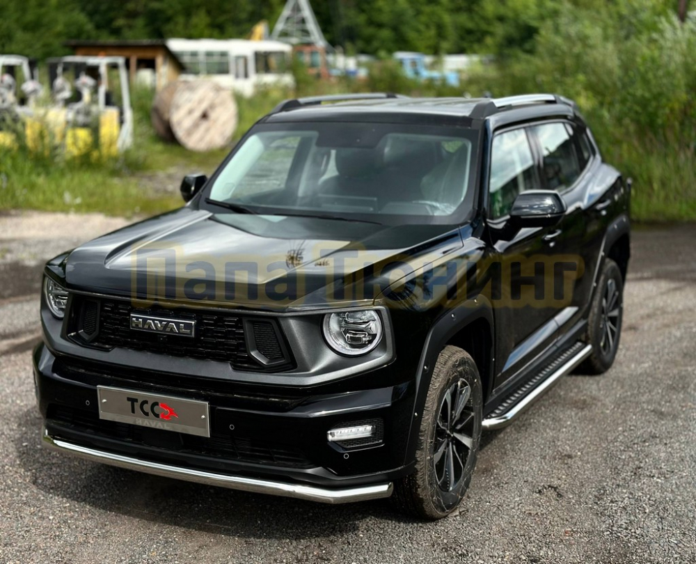 Пороги с площадкой (нерж. лист) 42,4 мм ТСС для Haval H7 2024-