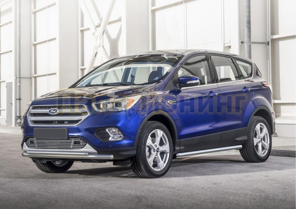 Пороги алюминиевые Brillant серебристые для Ford Kuga 2008-2013