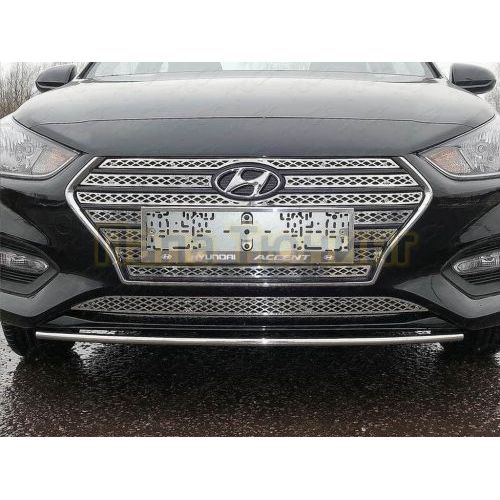 Накладка на задний бампер (лист зеркальный логотип Hyundai) ТСС для Hyundai Accent 2017-
