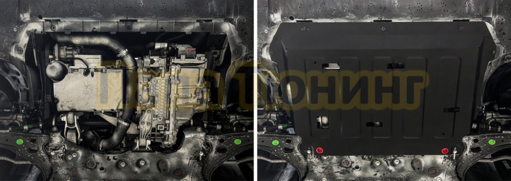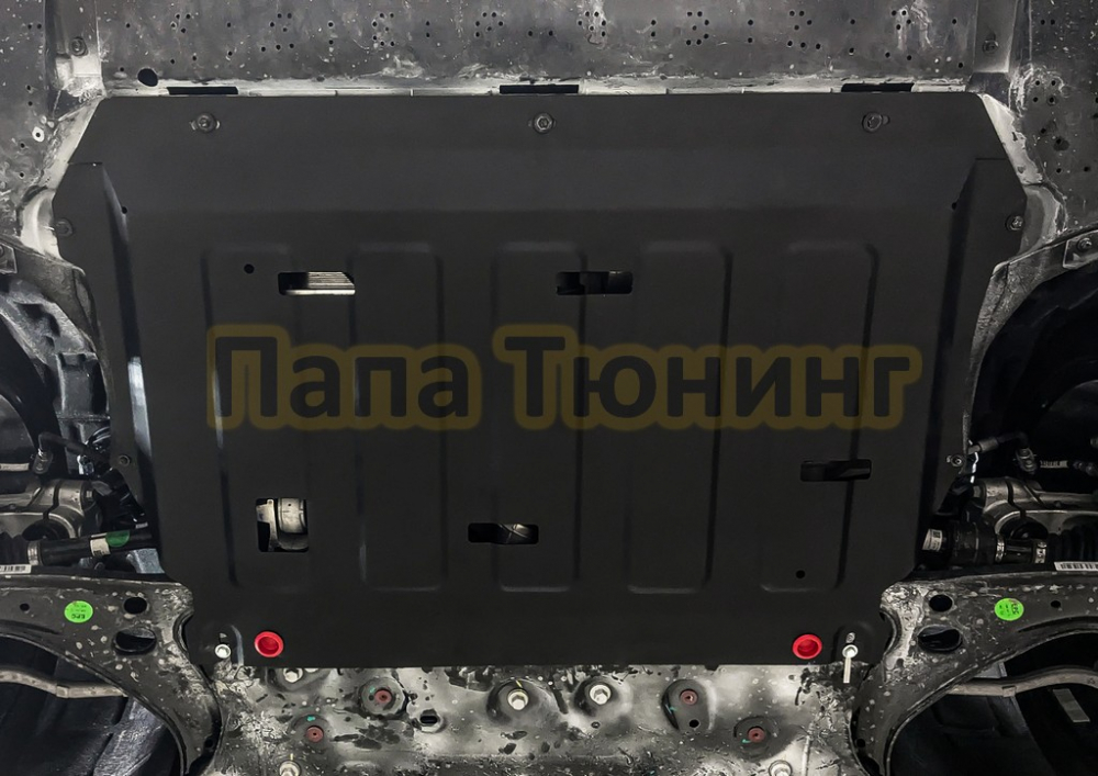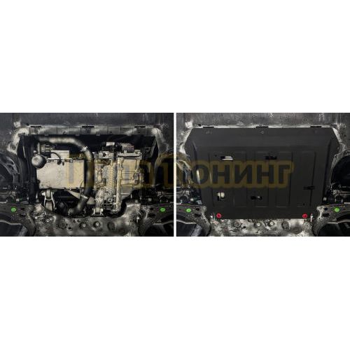 Защита картера + КПП + комплект крепежа АвтоБРОНЯ Сталь для Jetta VS7 V-1.4 АКПП/МКПП передний 2023-