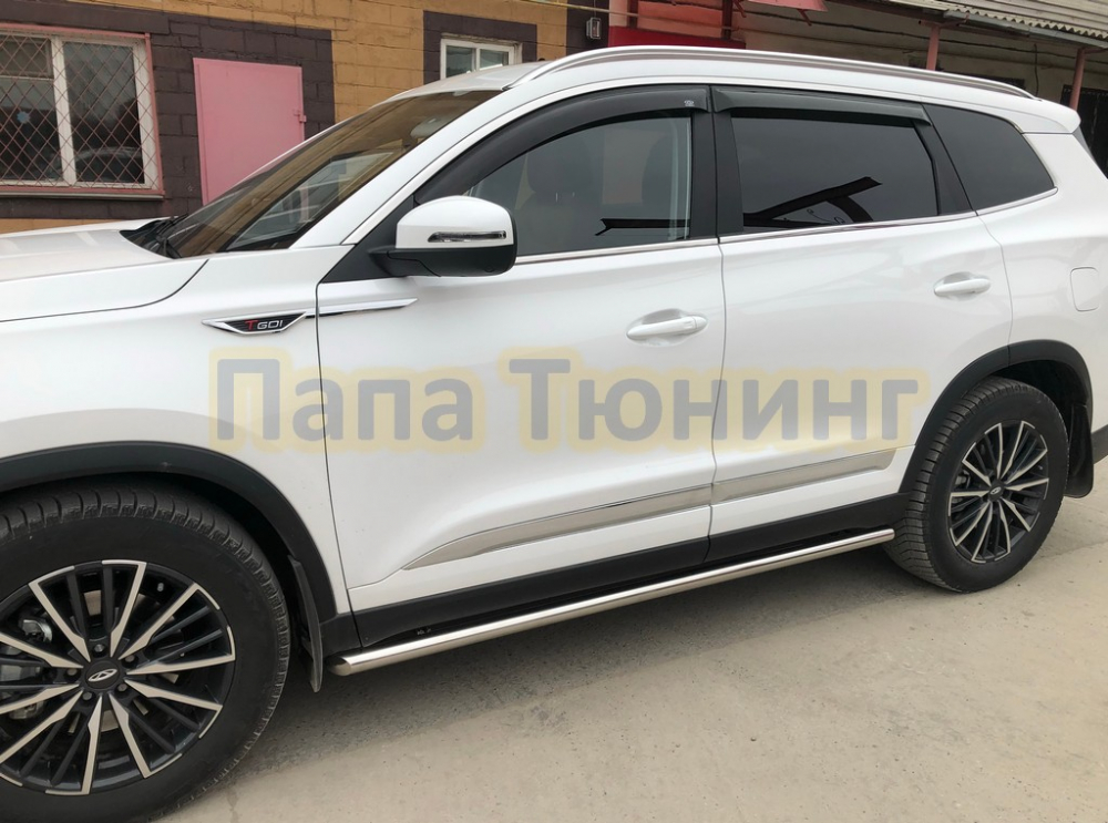 Пороги труба с проступью Папа Тюнинг d76 для JETOUR Dashing 2023-