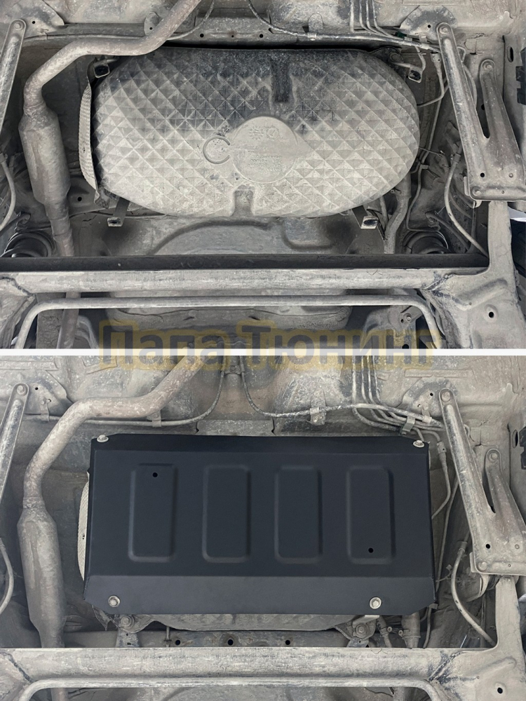 Защита топливного бака + комплект крепежа АвтоБРОНЯ Сталь для GAC M8 V - 2.0. АКПП передний 2024-
