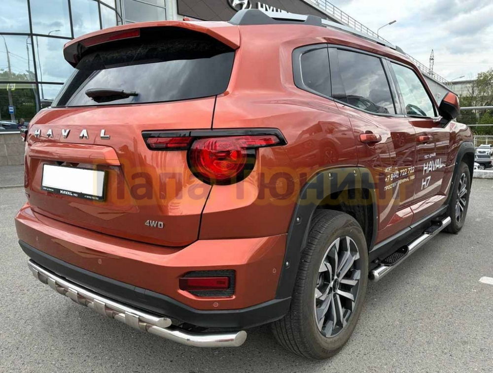 Защита передего бампера двойная с перемычками Папа Тюнинг d60/42 для Haval H7 2025-