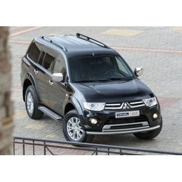Защита передняя двойная с накладками 76-57 мм Rival для Toyota Fortuner 2017-