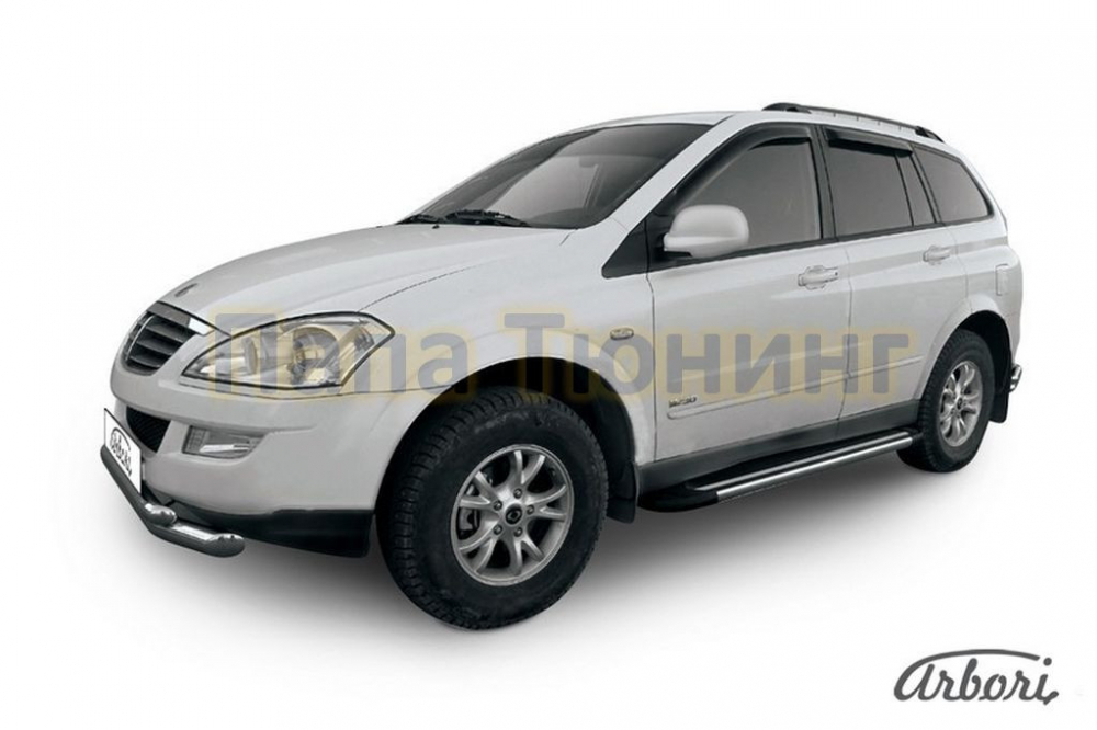Пороги алюминиевые Arbori Luxe Silver серебристые для SsangYong Kyron 2005-2015