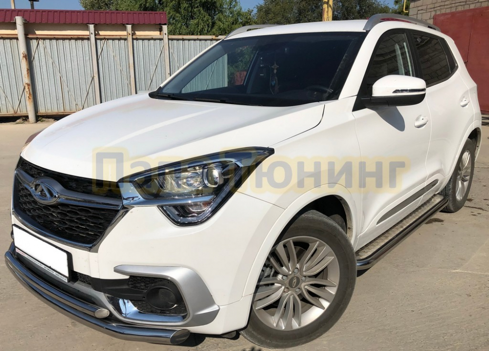 Пороги с накладным листом d42 для Chery Tiggo 4 2019-2024