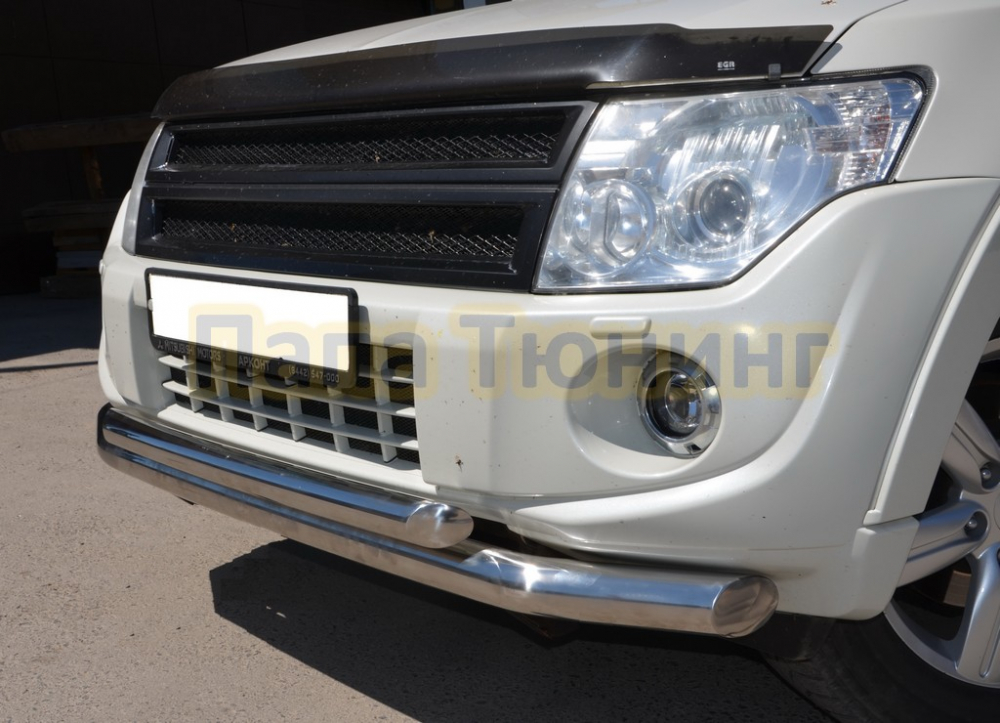 Пороги с накладным листом d76 для Mitsubishi Pajero 4 2006-2017