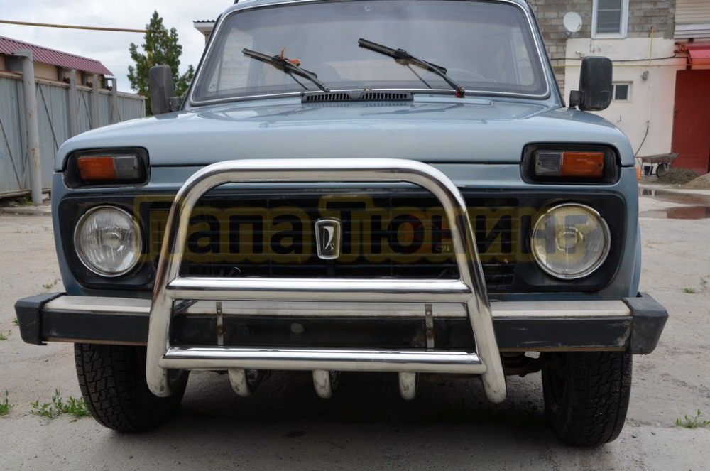 Защита переднего бампера скоба низкая+акула d53/42 для Niva 2131 1993-