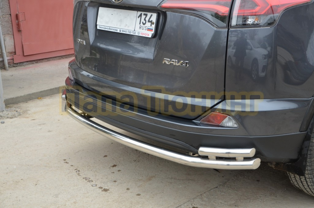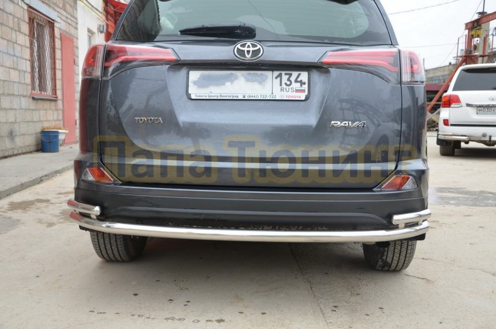 Защита заднего бампера двойная угловая d60/42 для Toyota RAV4 2015-2019