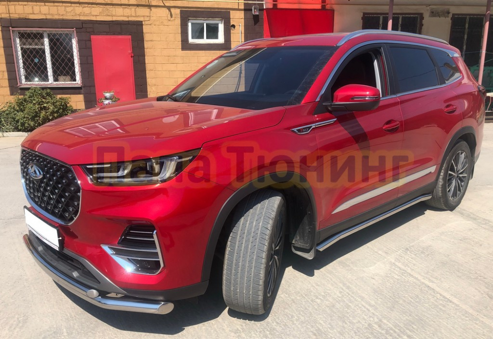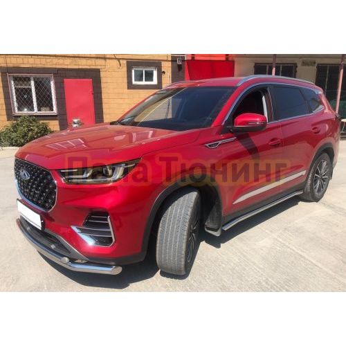 Пороги труба с проступью Папа Тюнинг d76 для JETOUR Dashing 2023-