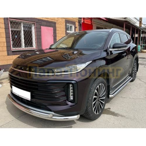 Пороги труба с проступью Папа Тюнинг d76 для JETOUR Dashing 2023-