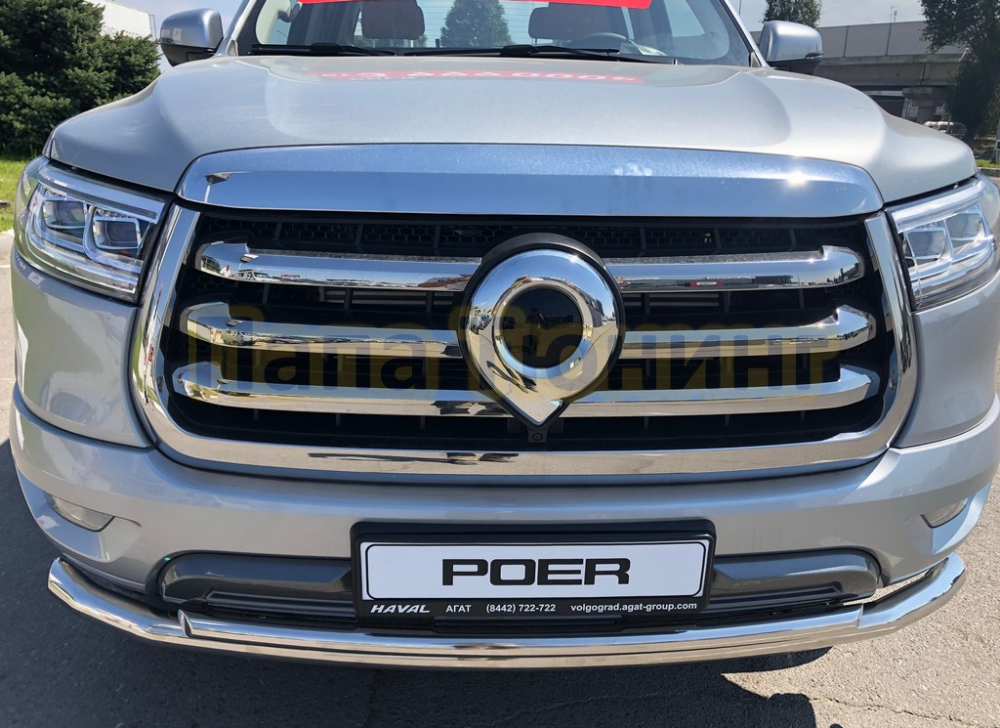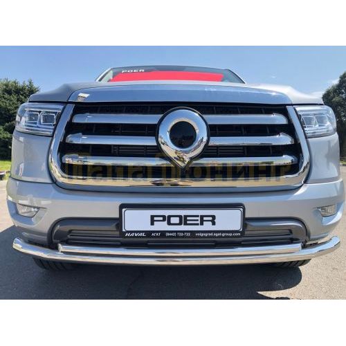 Защита переднего бампера двойная с перемычками Папа Тюнинг для Great Wall Poer 2021-