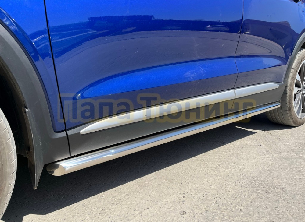 Пороги труба с проступью Папа Тюнинг d76 для JETOUR Dashing 2023-