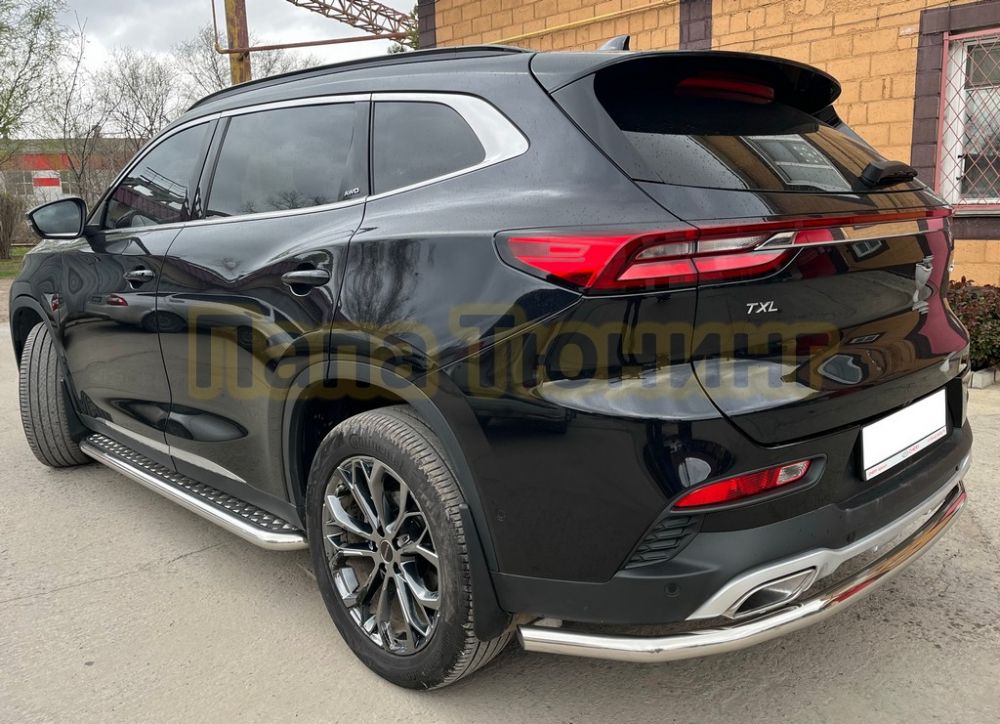 Пороги труба с проступью Папа Тюнинг d76 для JETOUR Dashing 2023-